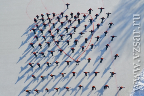 Сегодня в Саратове на стадионе "Динамо" состоялся флешмоб, приуроченный к 25-летию МЧС России. В целях популяризации профессий пожарного и спасателя участники акции выстроились на площадке в форме сердца.