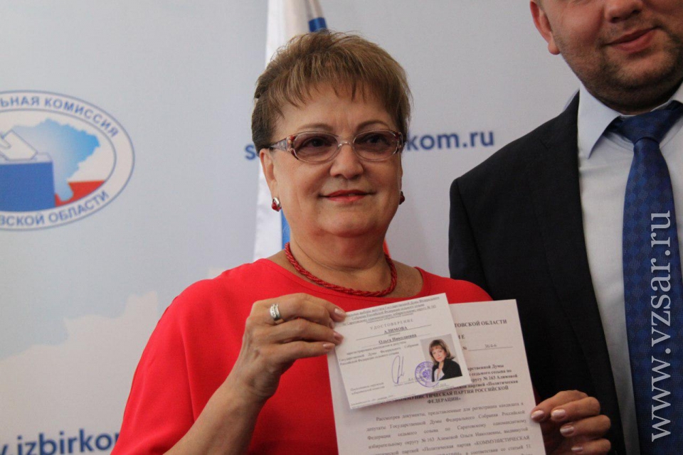 Далее очередь перешла к членам партии "КПРФ". Сразу три коммуниста были зарегистрированы в качестве кандидатов: Александр Гришанцов (округ № 163), Ольга Алимова (округ № 163) и Елена Шанина (округ № 165).