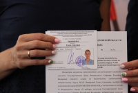 "Чаще всех бываю здесь. Дом родной", - пошутила зампред облдумы. Вопросов не возникло ни к одному из кандидатов, каждый получил соответствующее удостоверение.