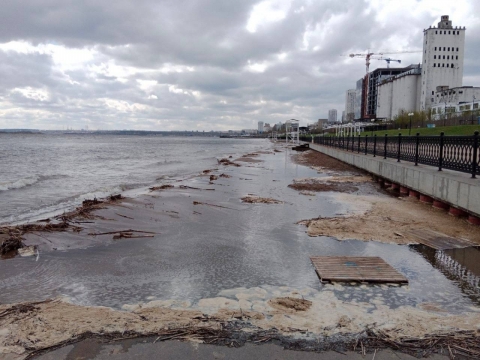 В Саратове "большая вода" размыла новый городской пляж на набережной