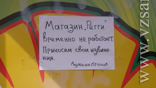 Молодые ребята, вооруженные плакатами с лозунгами вроде "Не травите наших детей" и "Дурь косит наш город!", собрались у магазина, чтобы пообщаться с его владельцами. Однако хозяева "Регги mix" встретили активистов движения вывеской: "Магазин временно не работает. Приносим свои извинения".