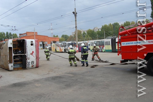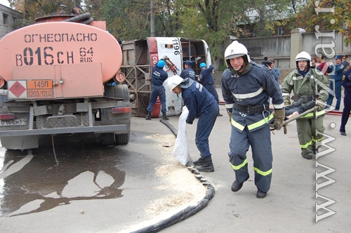 Сегодня около 13:30 на площади Ленина в Ленинском районе Саратова "произошло" крупное ДТП: бензовоз столкнулся с рейсовым автобусом. Это еще одна тренировка, которая прошла в рамках командно-штабных учений, сообщает официальный сайт администрации Саратова.