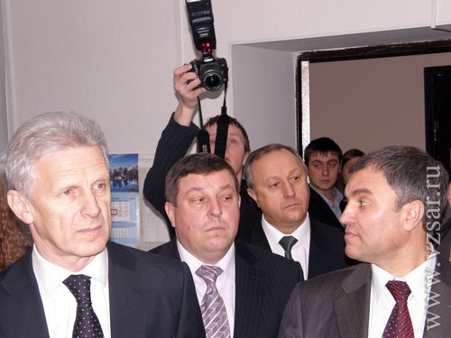 После двадцати минут с начала встречи сотрудница пресс-службы регионального отделения "ЕР" попросила журналистов удалиться из зала, заявив, что "на протокольную съемку выделено 20 минут, и студенты смущаются, задавая вопросы". Некоторые представители прессы покинули помещение и ждали VIP-персон в коридоре. "Коридорный брифинг" оказался быстротечным. Фурсенко ответил лишь на один вопрос.