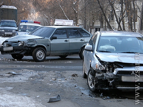 Около часа назад в центре Саратова столкнулись "ВАЗ-2109" и "Мицубиси Лансер".
