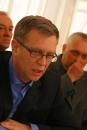 Солировал в помещении на Московской общественник Сергей Утц. "Мы должны зафиксировать все то, что тут произошло. Мы вчера собрались на совещания группы, подготовили письма в адрес палаты. С просьбой оповестить о том, что сегодня, 26 марта, в 12.00 мы собираемся продолжить голосование. Мы направили поручение членам Общественной палаты. Аркадий Шелест передал информацию под роспись. Аппарат наше поручение не выполнил. Мы будем обращаться к их работодателям, чтобы наложить взыскания на них за неисполнение требований наших членов. Мы также обращались к министру культуры Синюкову с просьбой привести помещение в нормальное состояние для голосования, но поддержки не получили.