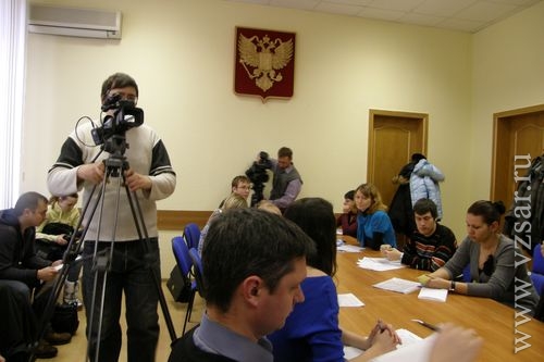 По ее словам, первоначально брифинг планировали провести в Институте законотворчества СГАП (директор Александр Ландо), однако, как выразилась главред, "там внезапно прорвало трубы".