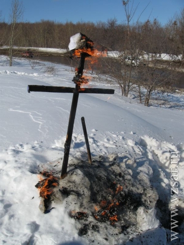 Водрузив на вершине снежного фрукта партийный флаг, участники акции перешли к аутодафе. Чучело с лейблом "Едим Россию" обильно "сдобрили" керосином и подожгли. Огонь, раздуваемый сильным ветром, за считанные минуты уничтожил "врага".