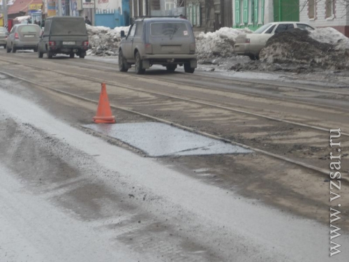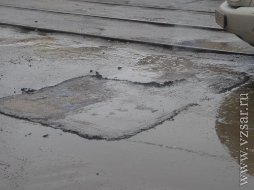 Сегодня в Кировском районе Саратова, на улице Большая Горная (от Рахова до Пугачевской), ведется ямочный ремонт дороги. Сотрудники МУП "Городские дороги плюс" укладывают горячий асфальт прямо в лужи. Весеннее таяние снега не позволяет дорожникам качественно выполнить свою работу. Вода буквально заливает только что уложенный асфальт, что не лучшим образом сказывается на качестве ремонта.
