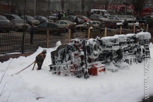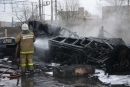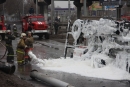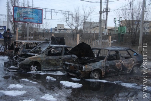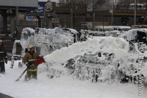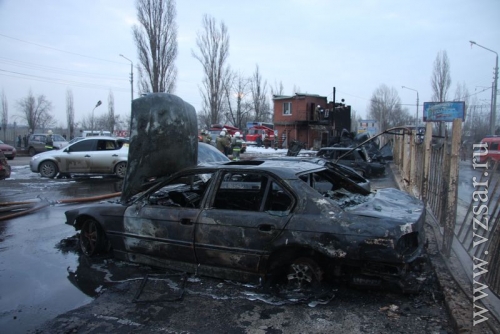 "Руководитель тушения сразу объявил повышенный ранг пожара, так как горело ориентировочно 30 автомобилей на общей площади 300 кв. метров. Был розлив топлива из опрокинутого бензовоза. Горение проходило очень интенсивно. Создалась угроза высоковольтным проводам и ЛЭП железной дороги. По прибытию первых подразделений были развернуты пенные стволы по тушению разлитого бензина и машин на автостоянке. Также на месте ЧП образовалась высокая тепловая энергия, в результате чего пожарные удаляли потушенные автомобили на расстояние".