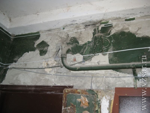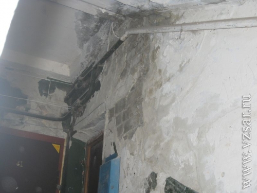 Саратовцы сообщают: "Мало того, несущая стена из-за влажности с каждым годом разрушается все сильнее, и уже сейчас она стала как минимум на треть тоньше. Жители квартир на первом этаже опасаются, что однажды она может просто рухнуть и будет хорошо, если в результате этого ЧП не пострадают люди. И это все происходит на фоне выщербленных ступеней, обваливающихся стен, торчащей проводки, замотанной изолентой".