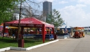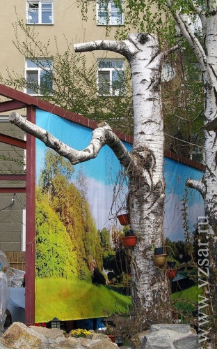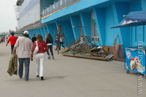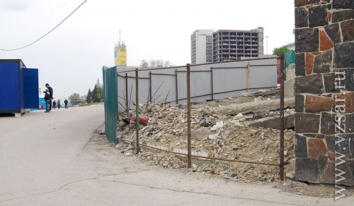 "С наступлением теплых деньков набережную стали "украшать" пестрые рекламные вывески и палатки летних кафе, которые установили прямо на газонах сквера. Деревья, занимавшие, по мнению предпринимателей, слишком много места, обрезали или просто спилили. За посаженными космонавтами два года назад саженцами ухаживают жители ближайших домов. "Аллею звезд", хранящую память об именитых жителях и гостях города, закрыло собой очередное сезонное заведение.