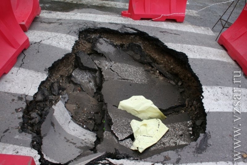 Вчера днем в центре Саратова, на пересечении улиц Сакко и Ванцетти и Вольская, провалился асфальт. Огромная яма заблокировала одну полосу движения и пешеходный переход. Примечательно, что на этом перекрестке зимой этого года МУПП "Саратовводоканал" производил ремонт водовода.