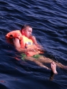 Экипаж корабля в считанные минуты надел спасательные жилеты и спустил на воду шлюпку, в которую сели "пассажиры". К этому времени к "месту трагедии" прибыл катер ГИМС, отреагировав на сигнал SOS.