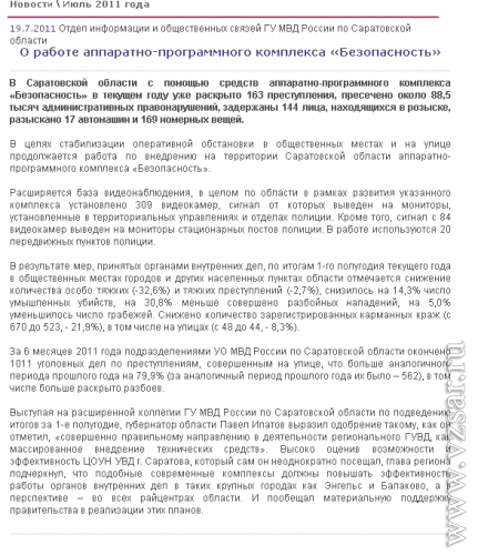 В текущем году в Саратовской области с помощью средств аппаратно-программного комплекса "Безопасность" раскрыто 163 преступления.