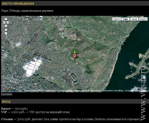 Стоимость "обычных" билетов составляет - 500 рублей, VIP (доступ на верхний этаж) - 1000 рублей, столик — 5000 рублей.