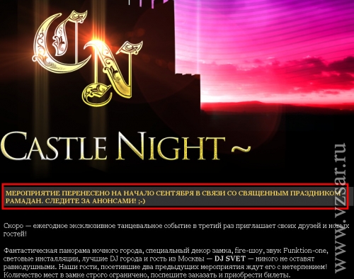 На официальном сайте "CASTLE NIGHT" появилась информация о переносе готовящейся вечеринки в Национальной деревне.