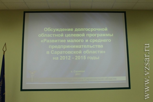 В эти минуты в ТПП Саратовской области (ул. Шелковичная, 186) проходит обсуждение долгосрочной региональной целевой программы по развитию малого и среднего предпринимательства на 2012-2015 годы. Целью собрания является внесение изменений в документ, подготовленный областным правительством. Чиновников на мероприятии представляет первый замминистра экономического развития и торговли области Андрей Шеметов и замминистра промышленности и энергетики Ольга Лутьянова.