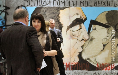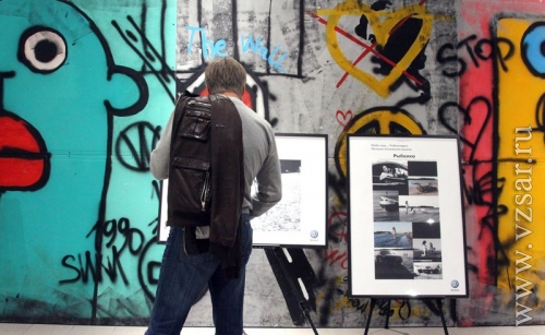 Его композиционным центром, помимо экспозиции самих работ, созданных фотохудожником Юрием Пузановым и членами интеллектуального содружества "Те самые", стал макет берлинской стены со всеми ее знаменитыми атрибутами.