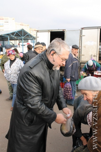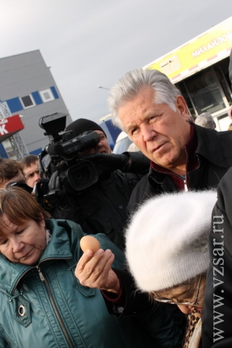 Одна из пожилых покупательниц не смогла самостоятельно уложить в сумку купленную рыбу. Ей на выручку пришел зампред Щербаков, однако женщина отказалась от помощи чиновника. Она попросила, чтобы ей помог сам губернатор. Куратор финансового сектора правительства вынужден был звать на подмогу шефа. Павел Леонидович с удовольствием откликнулся на призыв подчиненного и уложил купленную провизию в сумку.