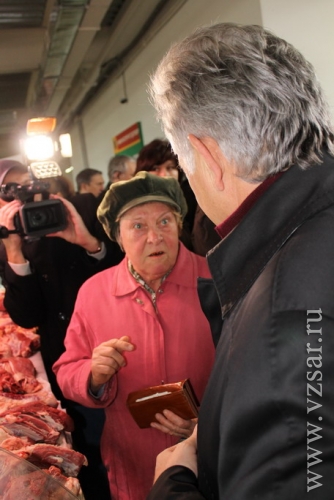 Другая обманутая пенсионерка пожаловалась Ипатову, что ценники на прилавках - обманка: по этой цене отпускаются только мясо с изрядной долей костей. Мякоть прячется продавцами под прилавками, и ее они "загоняют" по ценам около 300 рублей.