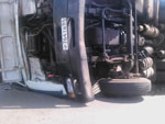 Около трех часов назад в Саратове на Московском шоссе в районе ВСО перевернулась фура с металлоломом.