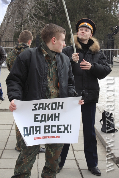 Вчера, 3 марта, у памятника Чернышевскому в Саратове состоялась очередная акция саратовских националистов и казаков.