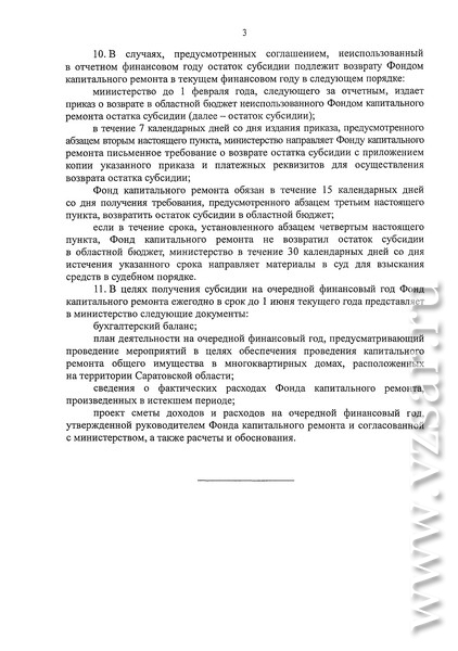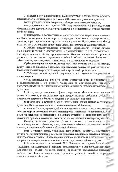 Также губернатор подписал постановление "Об утверждении положения о порядке определения объема и предоставления из областного бюджета субсидий специализированной некоммерческой организации "Фонд капитального ремонта общего имущества в многоквартирных домах в Саратовской области" в рамках реализации подпрограммы "Проведение капитального ремонта многоквартирных домов" государственной программы Саратовской области "Обеспечение населения доступным жильем и развитие жилищно-коммунальной инфраструктуры до 2020 года".