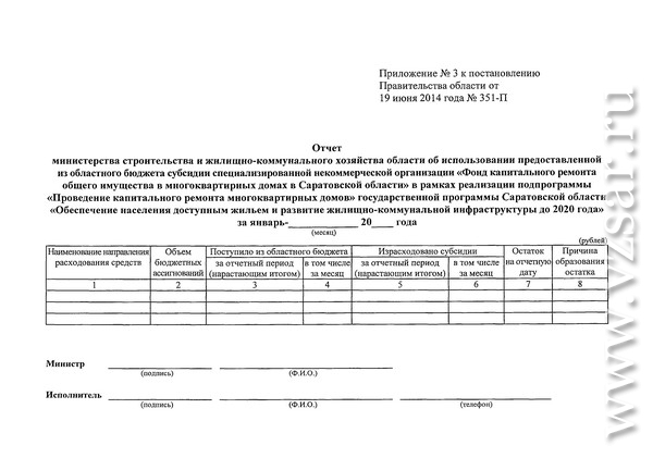 В свою очередь министерство обязано ежемесячно до 14-го числа, следующего за отчетным (за год – до 28 января), предоставлять отчет в министерство финансов и Фонд содействия реформированию ЖКХ.