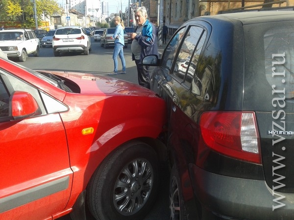 Около получаса назад, в Саратове на пересечении улиц Соборная и Челюскинцев Саратова произошло ДТП. Столкнулись три иномарки.
