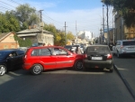 В настоящий момент автомобили практически полностью перегородили проезд по улице Челюскинцев. Водителям приходится объезжать место ДТП по тротуару.