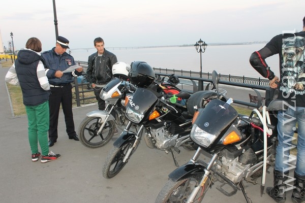 Корреспондент ИА "Взгляд-инфо" оказался в автомобиле, который патрулировал центр города, набережную и Затон. В первые два часа поиска обнаружить мотоциклистов не удалось, но с наступлением сумерек "удача" пришла. На набережной была замечена группа мотоциклистов подросткового возраста. На одном из ТС не было номерных знаков.