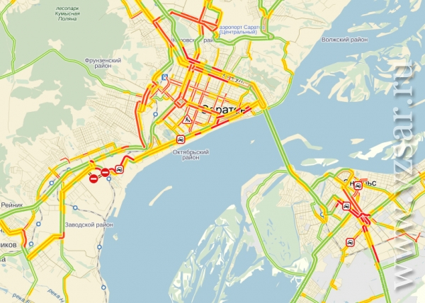 В Саратове начал работу сервис "Яндекс-пробки" от известной поисковой системы. Теперь жители города могут тщательнее планировать время, которое они собираются потратить на перемещение в городском трафике.