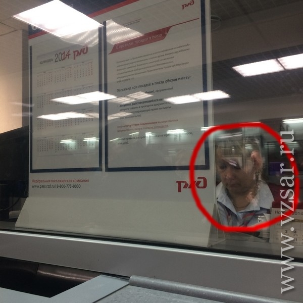 Очевидцы: кассиры вокзала прячутся от пассажиров за рекламой РЖД