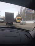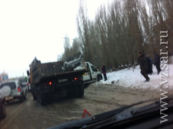 Сегодня утром напротив дома №41 на Новоастраханском шоссе Саратова "КамАЗ" столкнулся с маршрутным такси. Об этом сообщают очевидцы ДТП в социальной сети "ВКонтакте".