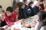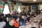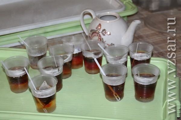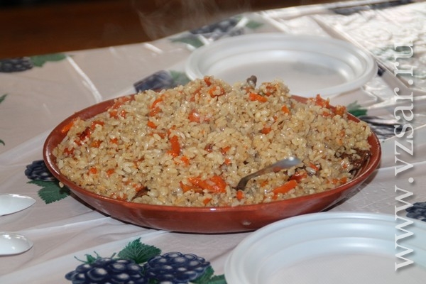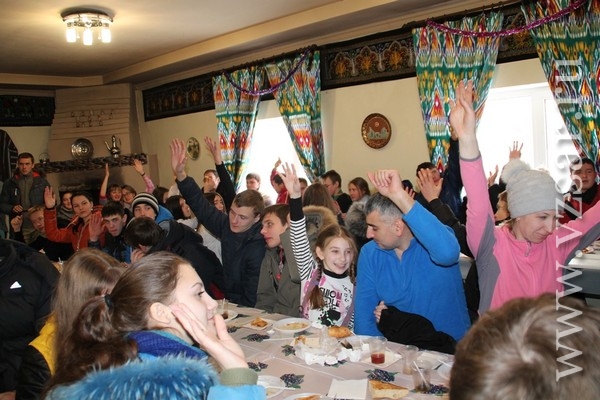В заключение соревнований участники "Трезвых игр" отправились на Узбекское подворье. Здесь они угощались пловом и пили чай со сладостями.