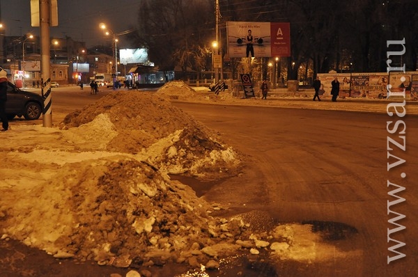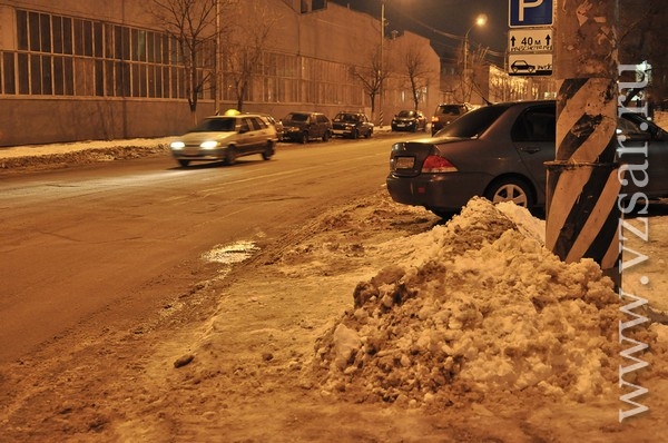 "По итогам увиденного глава Саратова сделал однозначные выводы – за последние несколько недель дорожные службы серьезно "снизили планку" качества производимых работ. Так, например, на ул. Серова - одной из центральных улиц Октябрьского района, по которой идет поток общественного транспорта, до сих пор не убрана наледь с проезжей части, вызванная авариями на коммуникациях, при том, что аварии ликвидированы больше месяца назад. Районная администрация не раз включала эту улицу в график уборки, но до сих пор дорожники убрали только верхний слой снега, а наледь осталась, что стало причиной сужения проезжей части более чем на 2 метра. Не расчищены также и тротуары.