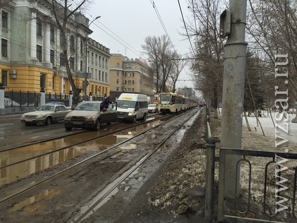 Сегодня, около 14.00, на улице Астраханская (между Московской и Большой Казачьей) выезд "маршрутки" на трамвайные пути стал причиной прекращения движения трамваев и серьезного затора автомобилей.