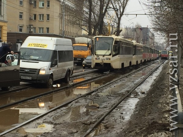 В результате случившегося, движение трамваев в сторону Детского парка остановилось.