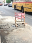 Напомним, сегодня в ИА "Взгляд-инфо" обратились водители, которые рассказали о дорожном препятствии на центральной улице города – яма на дороге фактически перегородила полосу движения общественного транспорта.