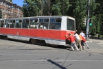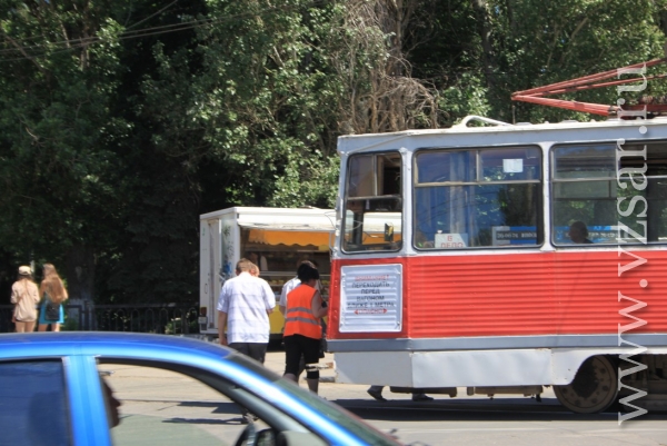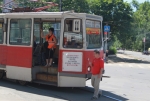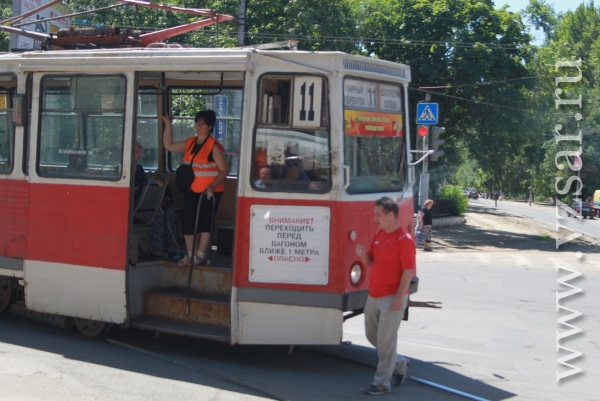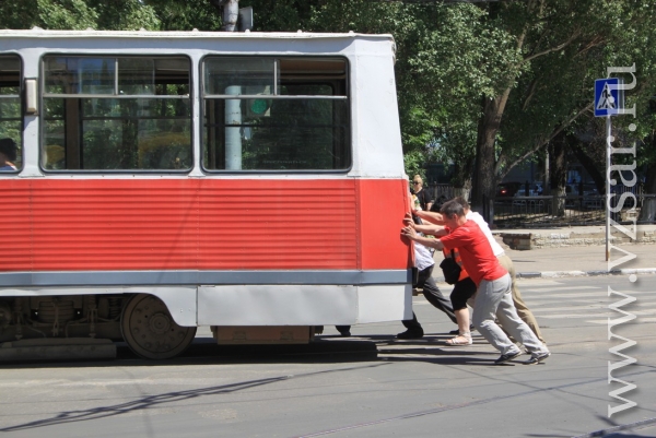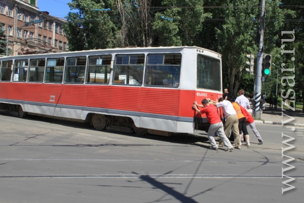 Сегодня в центре Саратова несколько человек толкали трамвай маршрута №11.