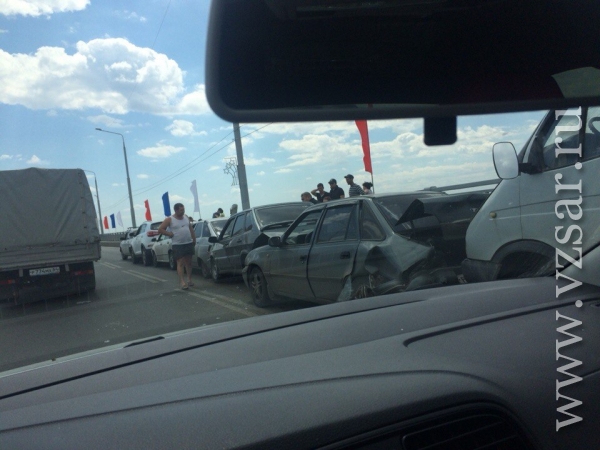 Около двух часов назад на мосту "Саратов – Энгельс" столкнулись семь автомобилей.