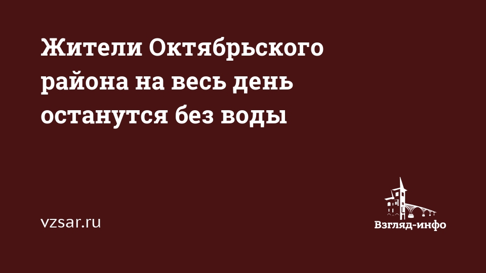 Завтра во многих домах Октябрьского района Саратова с 6.00 и до вечера отключат холодную воду. Об этом сообщает ООО "Концессии водоснабжения - Саратов".