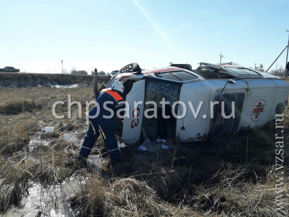 В Марксовском районе на пересечении трассы Самара-Волгоград и поселковой дороги к селу Бородаевка в результате ДТП перевернулась машина "скорой помощи". Об этом сообщают ГИБДД по Саратовской области.