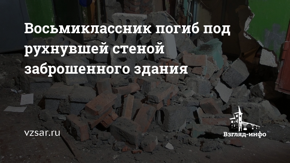 Восьмиклассник погиб под рухнувшей стеной заброшенного здания