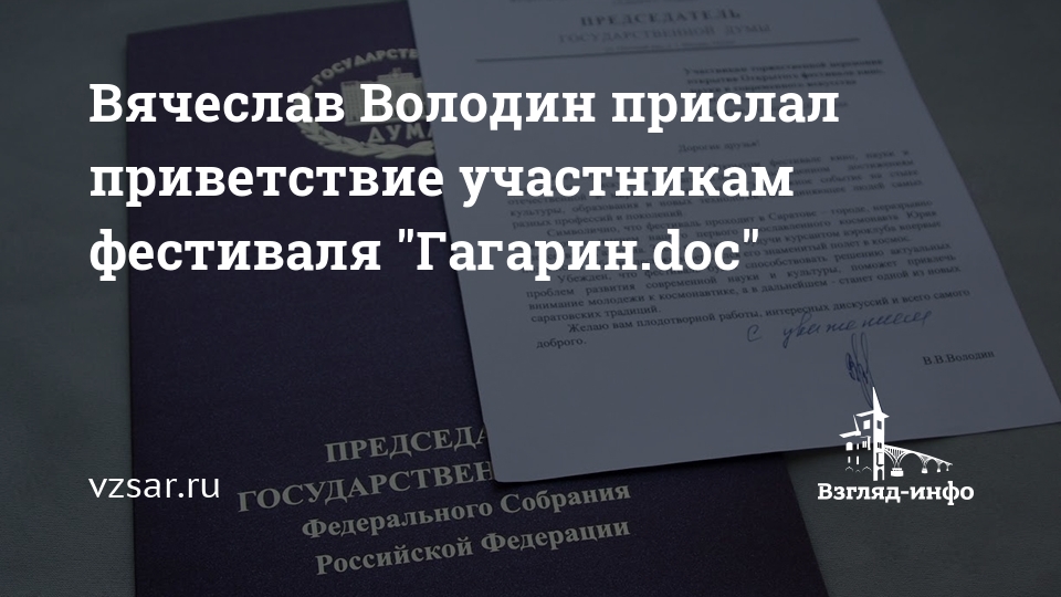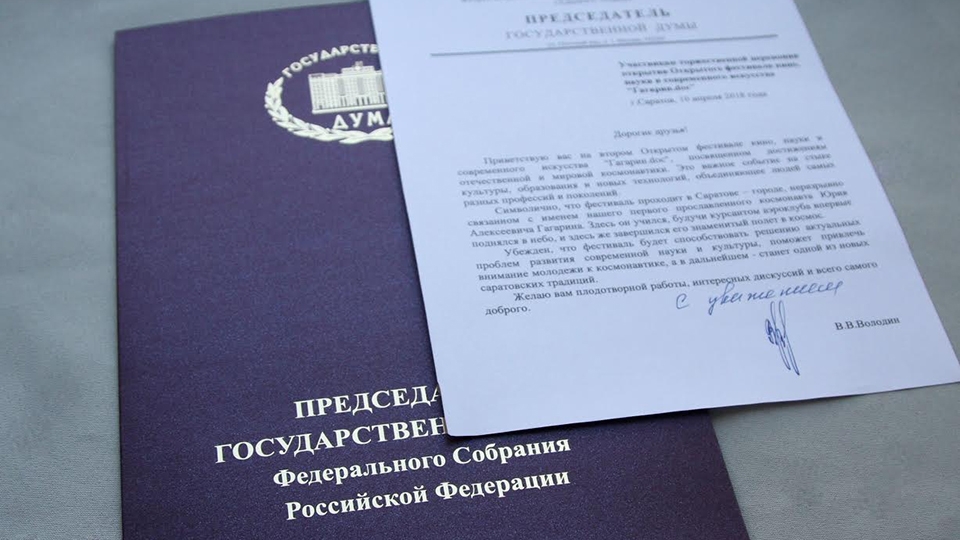 Вячеслав Володин прислал приветствие участникам фестиваля "Гагарин.doc"