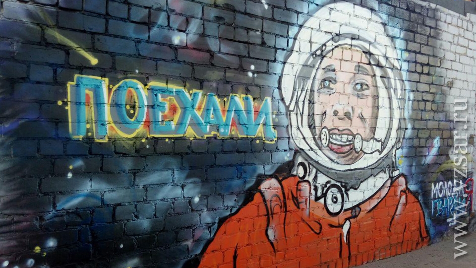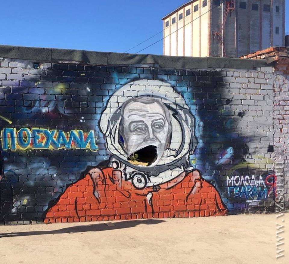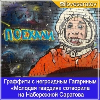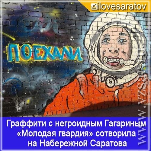 Новое граффити на саратовской набережной, изображающее легендарного космонавта Юрия Гагарина в довольно своеобразном стиле, стало поводом для многочисленных комментариев и шуток в социальных сетях.