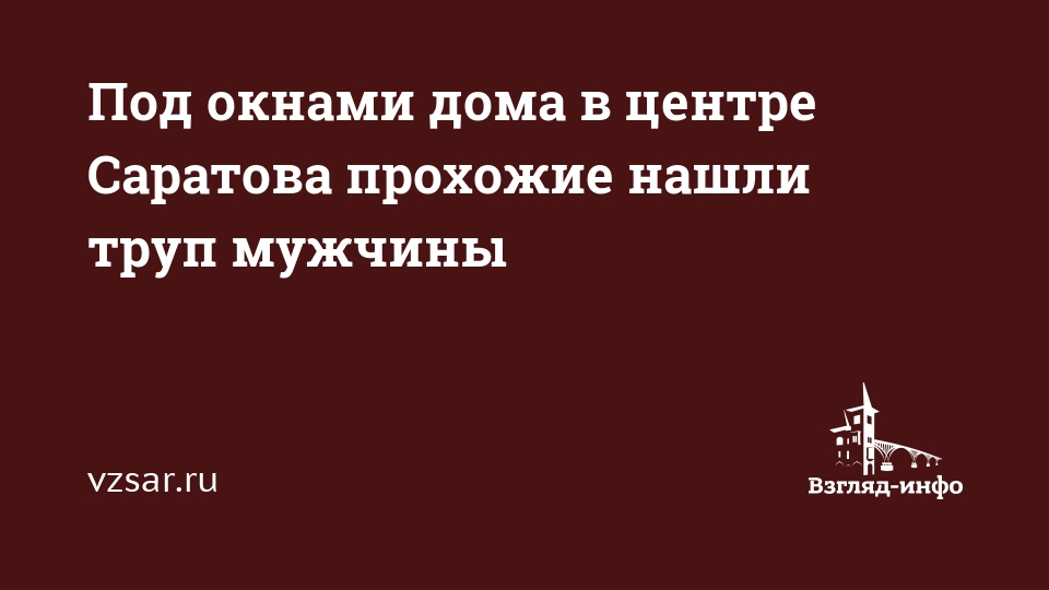 Под окнами дома в центре Саратова прохожие нашли труп мужчины