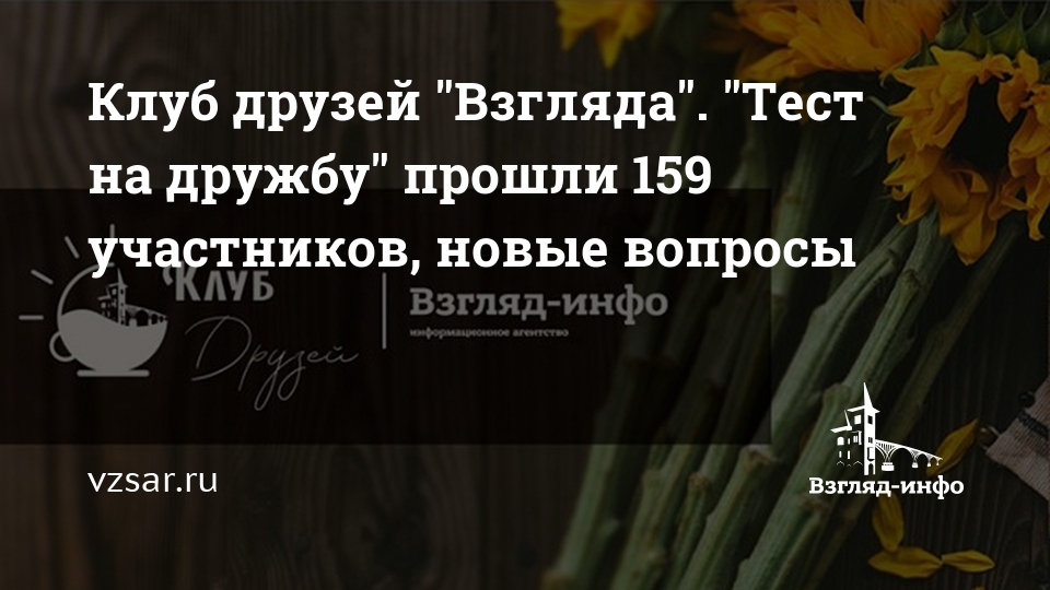 Клуб друзей "Взгляда". "Тест на дружбу" прошли 159 участников, новые вопросы