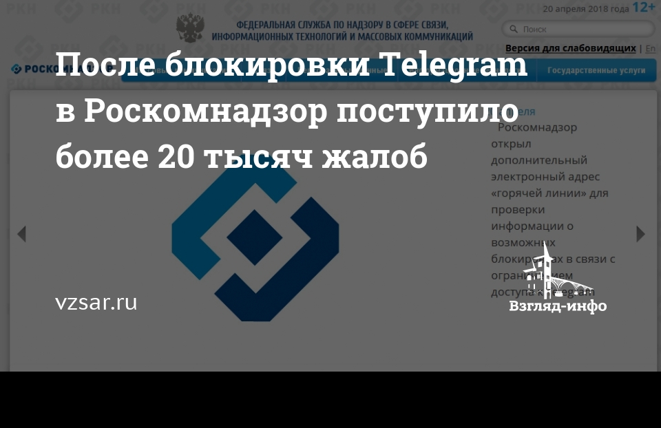 После блокировки Telegram в Роскомнадзор поступило более 20 тысяч жалоб