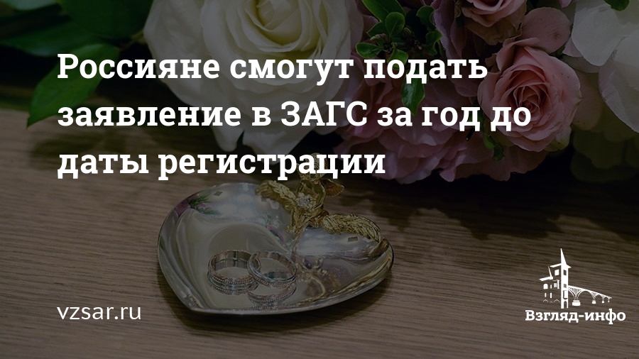 Россияне смогут подать заявление в ЗАГС за год до даты регистрации